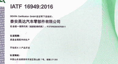 泰安昊達(dá)汽車零部件有限公司位于新泰市經(jīng)濟(jì)開發(fā)區(qū)嶅山路7號,公司成立于2011年,是一家生產(chǎn)中、重型卡車底盤鑄鍛件、焊接件、發(fā)動機(jī)配件的專業(yè)廠家,廠區(qū)占地面積101畝,2018年建設(shè)年產(chǎn)300萬件汽車零部件項目,項目總投資3.16億元,總建筑面積3.6萬平方米,是新泰市汽車裝配產(chǎn)業(yè)鏈的重點項目、2018年、2019年泰安重點項目,現(xiàn)已建設(shè)完畢,于2019年1月1日正式投入使用,設(shè)備新上覆膜砂自動化鑄造生產(chǎn)線1條、熱模鍛生產(chǎn)線6條、自動化焊接生產(chǎn)線10條、CNC加工設(shè)備200余臺套。 主要產(chǎn)品:中、重卡車底盤配件、轉(zhuǎn)向配件、中后橋氣室支架總成、中后橋配件、前橋轉(zhuǎn)向節(jié)臂、焊接配件、發(fā)動機(jī)配件。產(chǎn)品主要銷往中國重汽集團(tuán)、市場份額約50%,位居行業(yè)鑄件產(chǎn)品前三。 公司擁有IATF16949:2016國際標(biāo)準(zhǔn)質(zhì)量管理體系認(rèn)證,擁有實 ......